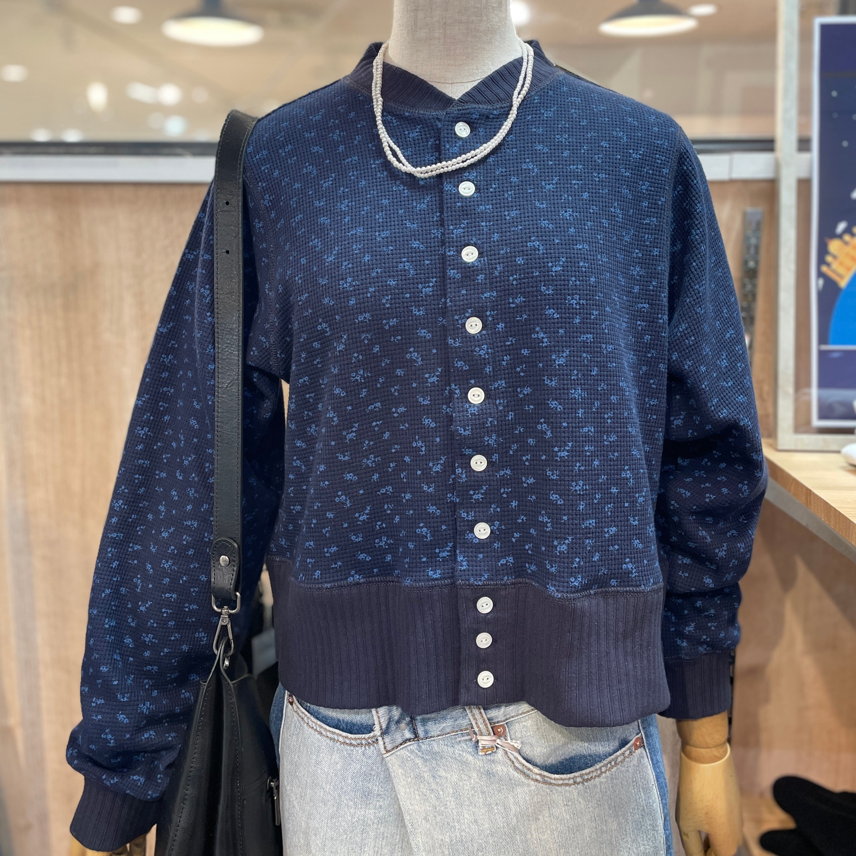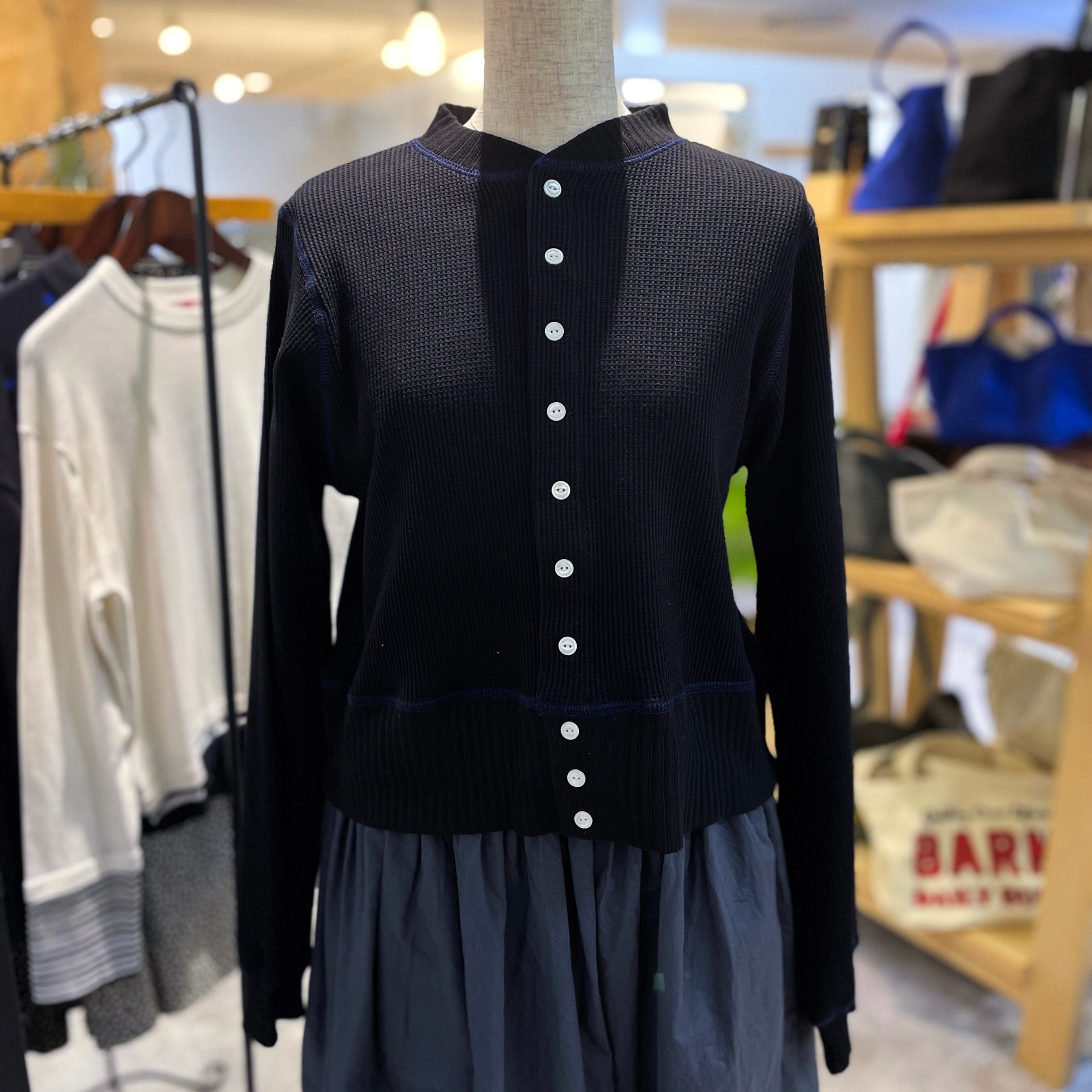 柔らかなワッフル生地が心地よい着心地を提供し、デイリーコーディネートに華やかさをプラスします。クロップド丈は、トレンド感を演出しつつ、どんなボトムスとも相性抜群です。普段使いはもちろん、軽アウターとしても重宝するアイテムです。